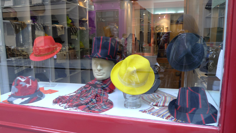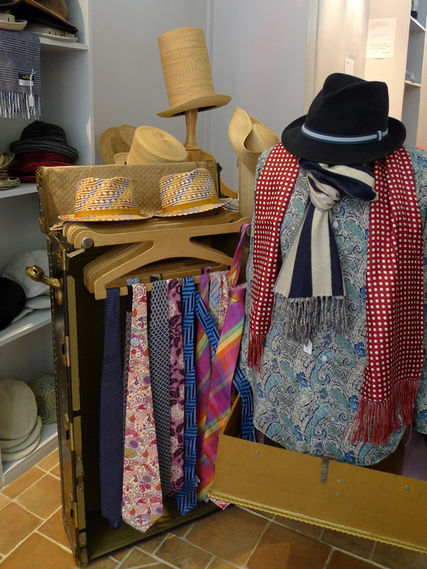 Stéphane me présente les différents modèles, me sort des trucs improbables, me fait toucher les douces écharpes venues d’outre-manche… me raconte l’histoire d’Anthony Peto et de Marie Mercier, qui ne partagent plus leurs vies mais ont toujours le même atelier, rue Saint-Denis.