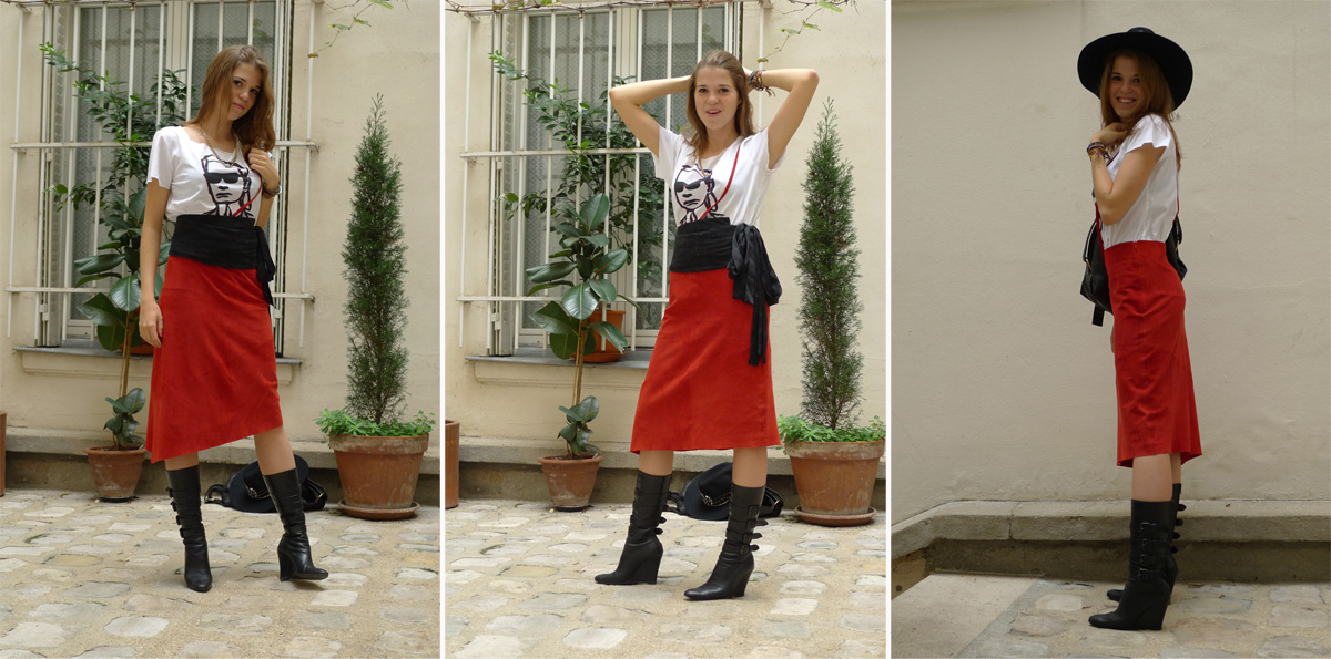 2. Moi c’est pas la jupe qui me plaît le plus, c’est ce tee shirt Karl Lagerfeld, tip top canon (L)