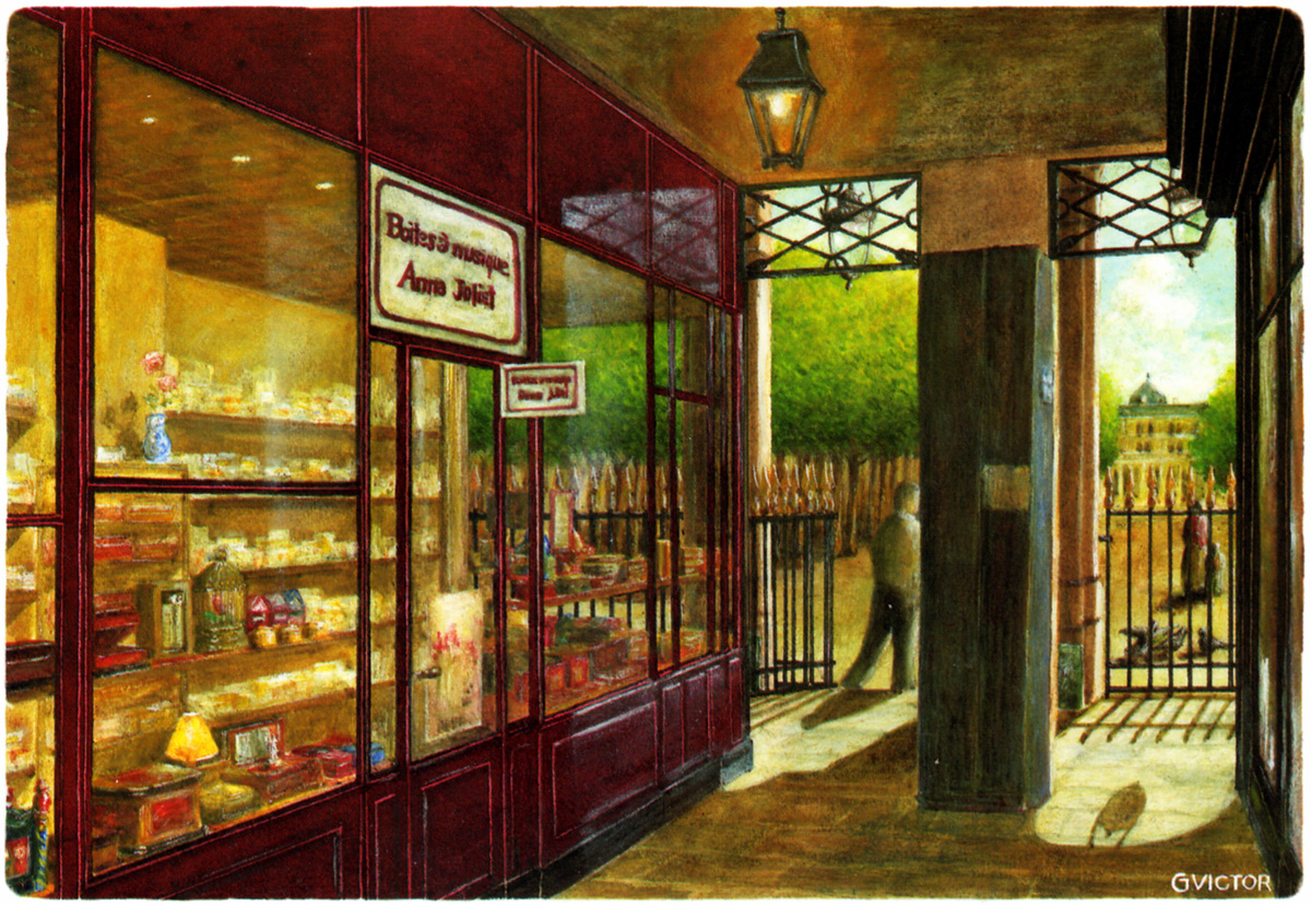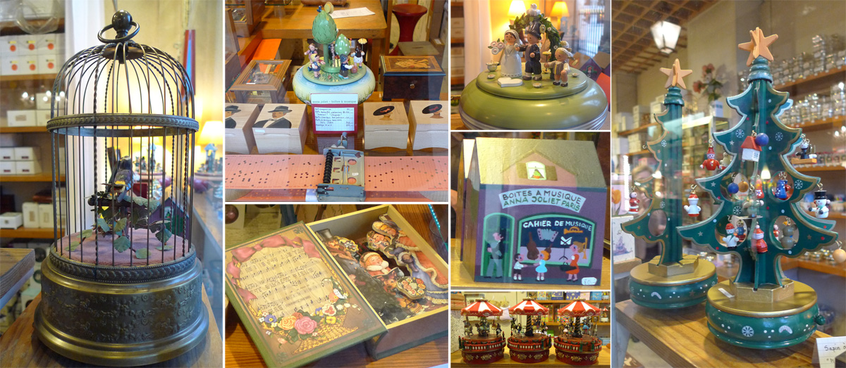 Une boutique de boîtes à musique, qui a toujours été ici, une vitrine devant laquelle je rêve aux paradis perdus d’une enfance heureuse imaginaire…