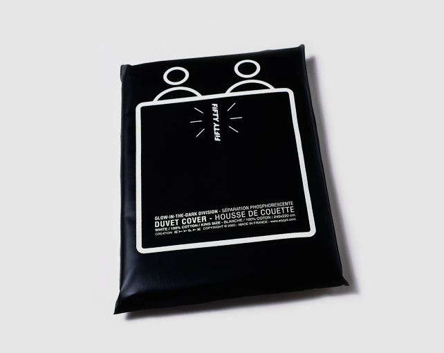 Vous avez un couple d’amis avec des soucis récurrents de partage d’espace vital? La housse de couette fifty-fifty, avec démarcation fluorescente du milieu du lit est pour eux!