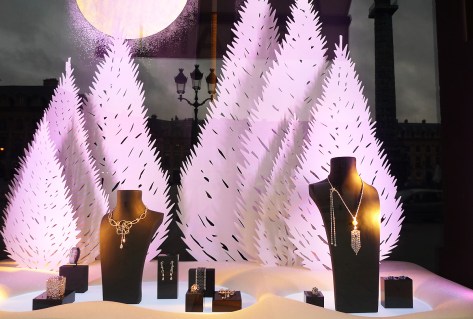 Au delà du total look, il y a aussi un imaginaire de luxe sans ostentation, jusque dans les vitrines, étincelantes pourtant, de la Place Vendôme fêtant Noël.
