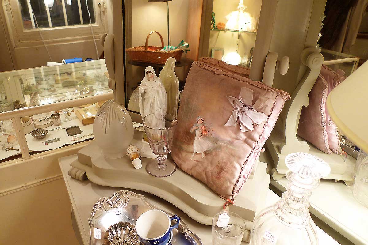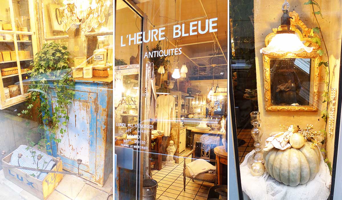 Celle de l’Heure Bleue, une minuscule boutique d’antiquités, cachée dans l’ombre de l’Eglise Saint Roch.