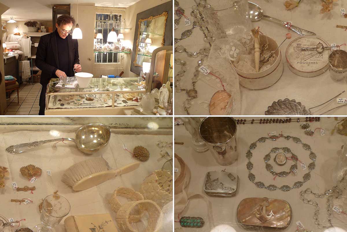 Ils sont à la boutique, ensemble, la semaine et font les marchés le dimanche, y chinent de gros ou de menus objets comme ceux qu’on découvre sous la vitrine du comptoir, tout au fond de cet endroit merveilleux.