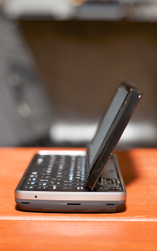 Une bonne surprise réside dans le dispositif de pointage. L’écran est tactile bien sûr, et le stylet fourni permet de déplacer le curseur directement à l’écran, mais la partie droite du boîtier, constitue un trackpad, alors qu’à gauche on trouve les deux boutons droit et gauche de la souris (placés ici l’un au dessus de l’autre). Cela laisse le choix, entre tenir pe PDA dans une main et le stylet dans l’autre, ou bien le tenir à deux mains et le piloter avec les deux pouces.