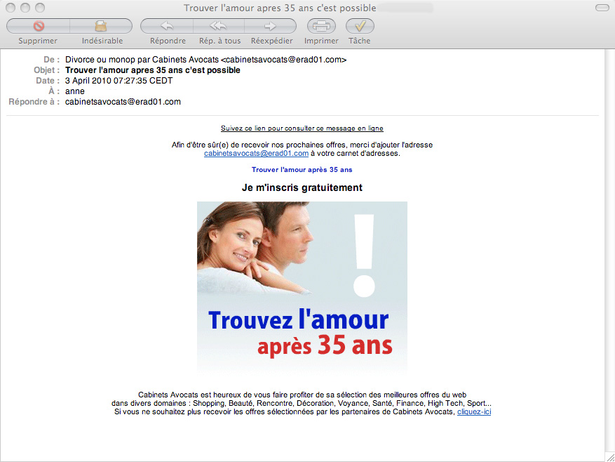 – Seul autre mail dans ma boîte, à part le spam habituel :