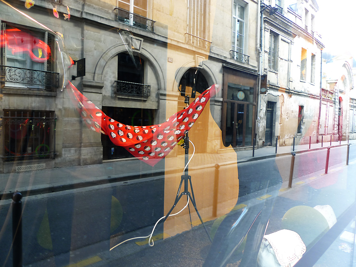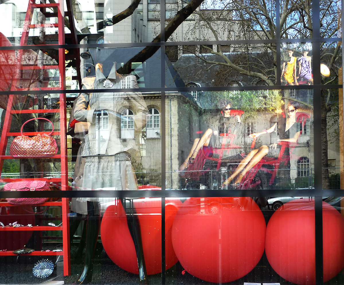 en plus de faire redécouvrir le travail de la grande dame rousse, j’adore tes photos où les façades d’enface se reflètent dans les vitrines Rykiel. cela ajoute à la magie des mises en scène des vitrines.
