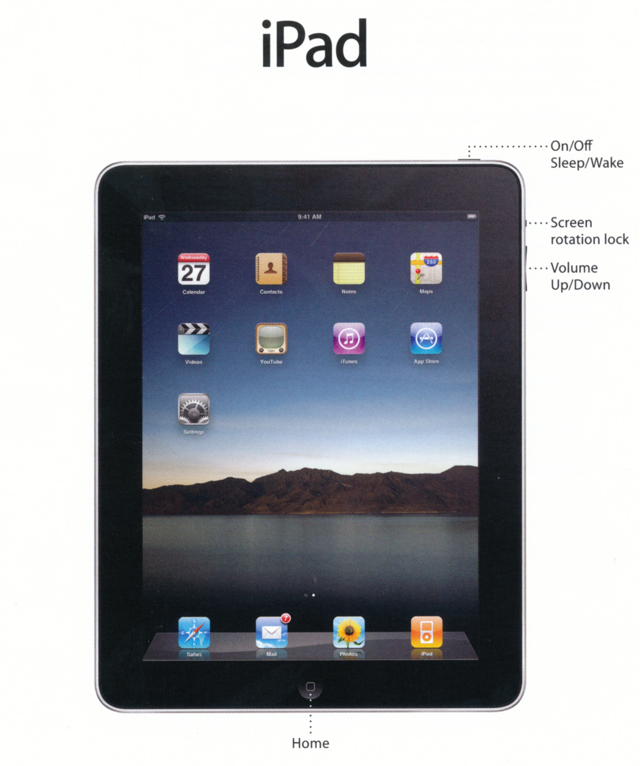 Sous l’iPad, le mode d’emploi, réduit à sa plus simple expression. Considérant que de toute façon, presque personne ne les lit, ce n’est pas un mal…