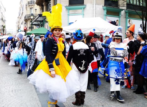 Nous étions jeudi dernier et j’étais descendue chercher mes cuissardes orange chez le cordonnier (elles sont prêtes pour l’hiver prochain, Capitaine) quand je me suis retrouvée au milieu de ce joyeux Carnaval…