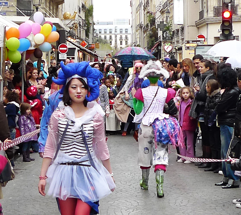 Nous étions jeudi dernier et j’étais descendue chercher mes cuissardes orange chez le cordonnier (elles sont prêtes pour l’hiver prochain, Capitaine) quand je me suis retrouvée au milieu de ce joyeux Carnaval…