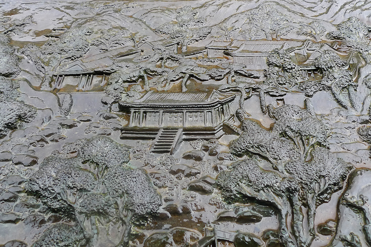 Paysages asiatiques en bas reliefs, sur lesquels il était inattendu et pourtant charmant de voir s’engouffrer l’eau en rigoles.