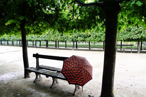 La pluie a cela de bien aussi qu’elle ne vide pas les baignoires pour remplir les lavabos, mais offre au promeneur la solitude qui n’existe que rarement dans mon jardin préféré de Paris !