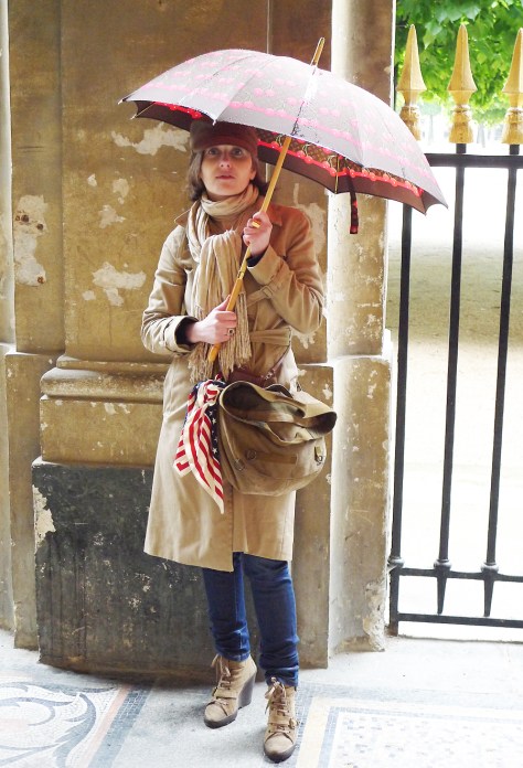Il est trop beau ton parapluie ! J’adore ton sac aussi, d’ailleurs, maintenant, a chaque fois qu’on te voit en photo, tu devrais taguer d’ou viennent tes fringues !