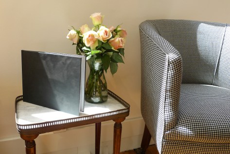 Un bouquet de fleurs fraîches, deux fauteuils, du parquet…