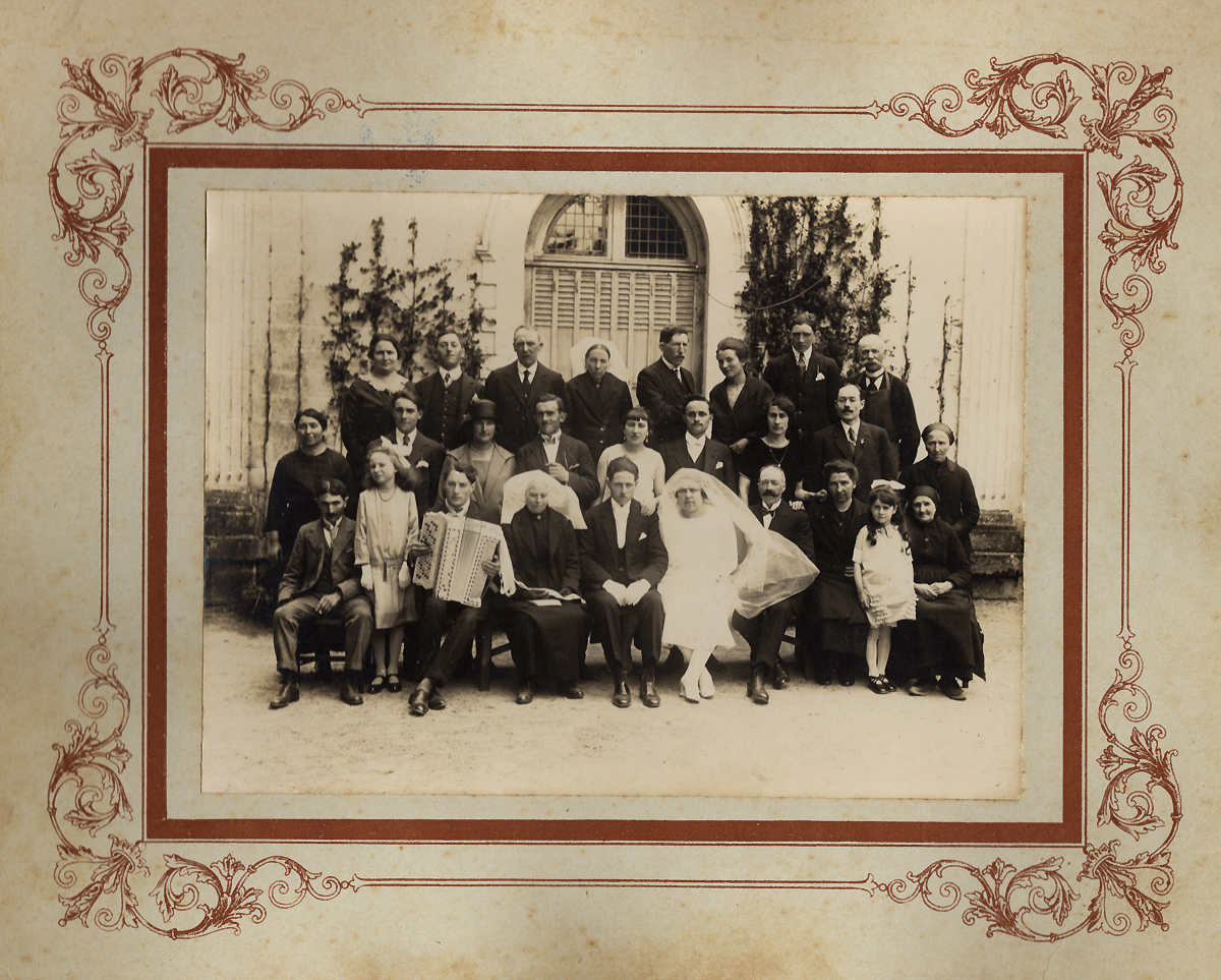 Beaucoup de gens qui portent semble t-il du noir, seul vêtement de cérémonie qui servaient aux mariages comme aux enterrements ou un mariage en temps de guerre, beaucoup de familles en deuil, quoique les fillettes sont en clair ?