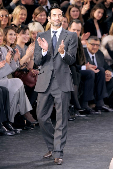 Autour d’un bassin rond duquel jaillit la source intarissable du génie de Marc, les Grandes Eaux de Versailles autrement dit, sont installés les apparatchiks du monde de la Mode, un peu blasés, toujours affûtés pourtant, appareils photos ou iphone en mains, prêts à twitter.