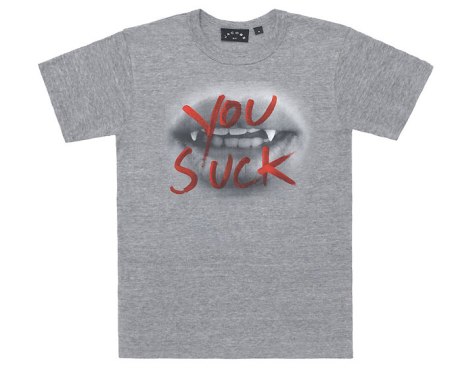 J’ai aussi craqué pour le t-shirt You Suck à la boutique londonienne de Marc Jacobs. Par ailleurs, ceux qui auront l’opportunité d’y passer pourront s’offrir un magnifique tshirt Bang, qui n’est pas sans rappeler les fameux « Protect the skin you’re in » avec les célébrités dénudées !! Quelle comm’ pour ce nouveau parfum!