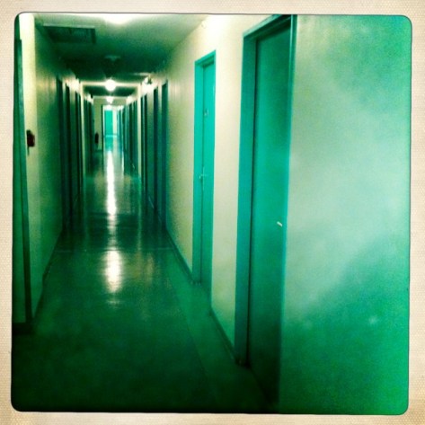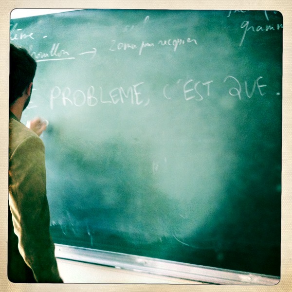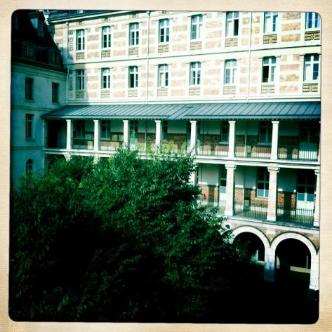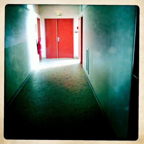 Ils arpentent les moindres recoins, descendent l’escalier de pierre jusqu’au réfectoire (où, afin de faciliter le travail du personnel, l’on est prié de ne pas empiler les plateaux, de mettre les couverts à côté de l’assiette et les déchets dans la grande assiette, m’ont-ils priée de te rappeler), t’écrivent des mots à la craie sur les tableaux de HX5.