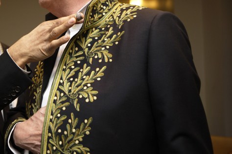 Je peux te faire rencontrer Jean d’Ormesson pour commencer…! Je plaisante, mais en ce qui concerne la veste brodée, j’ai longtemps eu envie d’une queue de pie pour femme comme ça. Avec de belles broderies académiques. En attendant, je cherche une veste de matador: rouge, courte avec de magnifiques broderies en volume sur les épaules.
