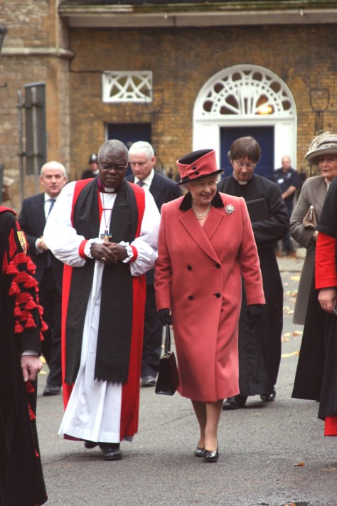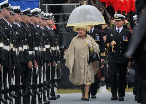 Ou une visite de la Reine à ses fidèles sujets (coiffés eux-aussi pour l’occasion ?), il y a quelques jours :