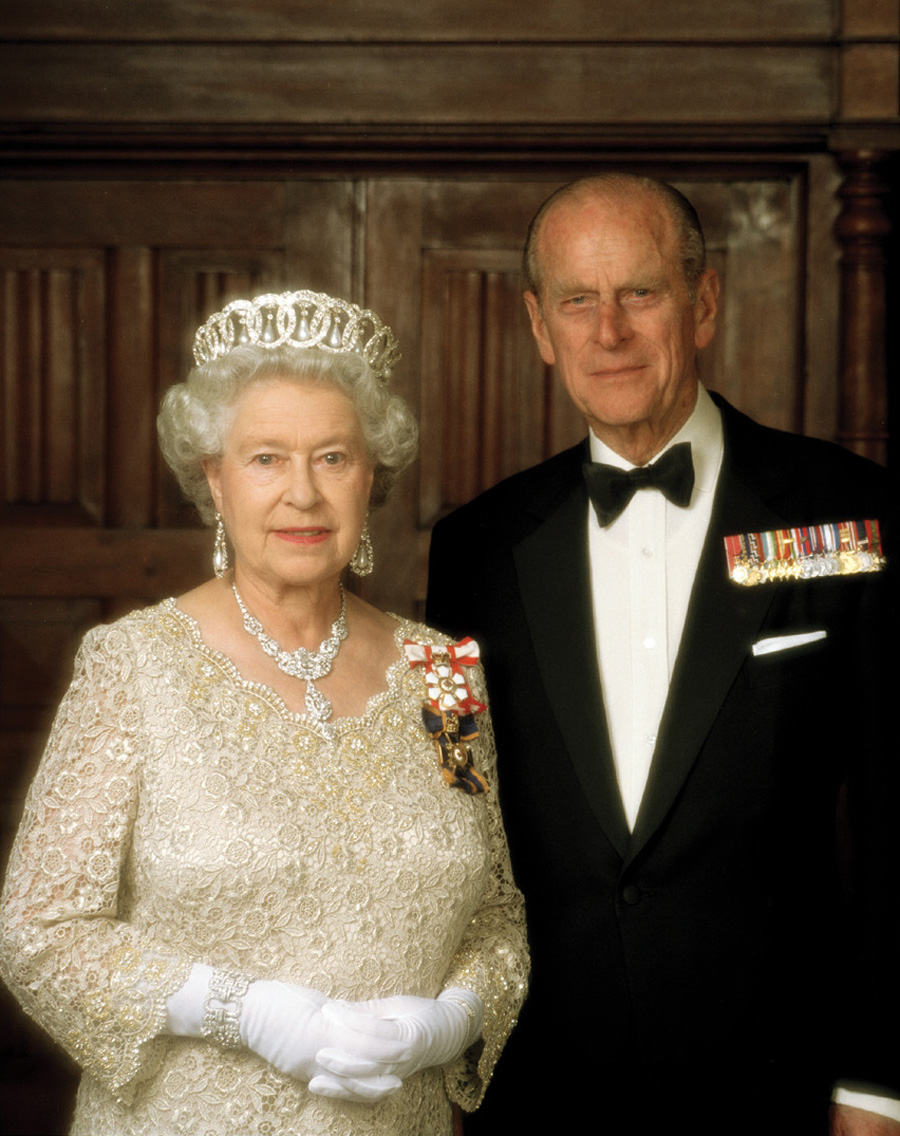 Qu’elle choisisse le bleu, le rose, le rouge, le jaune, ou le noir et blanc, la reine sait même s’entourer d’hommes assortis à ses habits… accessoires ultimes.