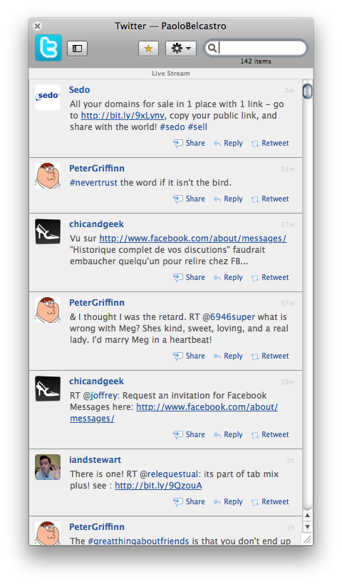 Si vous vous servez de ces outils par contre, je pense que comme moi vous trouverez RockMelt intéressant, pas forcément révolutionnaire, mais il vous fera gagner pas mal de temps, en vous évitant les allers-retours réguliers entre votre activité courante et FB ou Twitter tout en vous évitant d’avoir d’autres clients lancés simultanément comme Tweetie.
