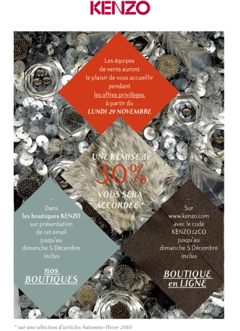Alors ne me dites pas que c’est une mauvaise idée de commencer par vous offrir un bon plan, valable jusqu’au 5 décembre. Le code est dans l’image : KENZO12CO