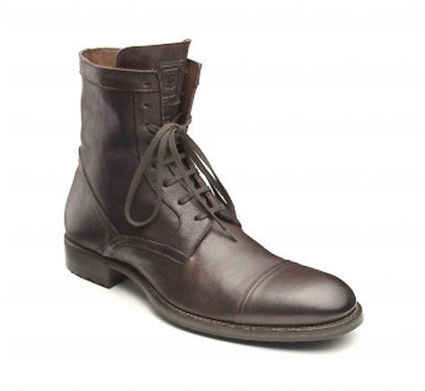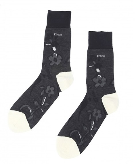 Chez les hommes, un pull col V, des godillots et des chaussettes fleuries qui ne sont pas pré-trouées, mais ont le talon et les orteils blancs !