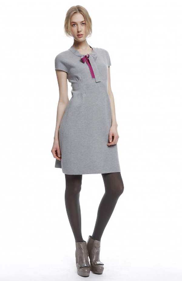 Sinon, misons sur le gris : un chapeau adorable, une robe en maille (que je veux !) et un gilet, moins moi mais très Kenzo spirit !