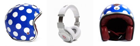 Des casques ! Ateliers Ruby aux couleurs de Colette pour le scooter (600€) ou Beats Pro High Performance Professionnal par Monster Cable (480€) :