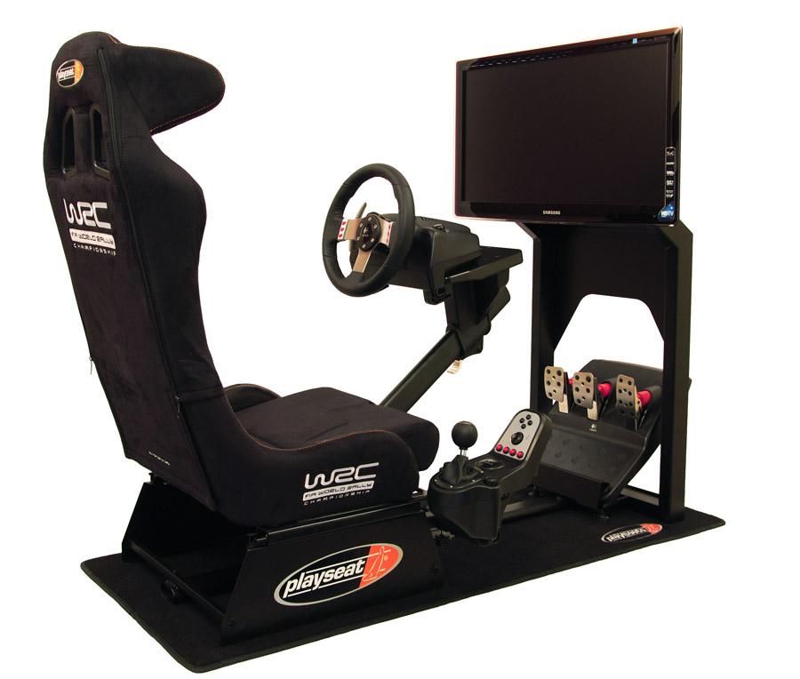 Génial, me direz-vous, mais maintenant que j’ai ces trois éléments, comment je fais? J’installe le volant et le levier de vitesse sur la table basse du salon, devant le canapé, les pédales posées par terre? C’est pas vraiment de la simulation, les voitures de course ayant rarement un fauteuil de 2m de large, et en plus je vais me péter le dos.