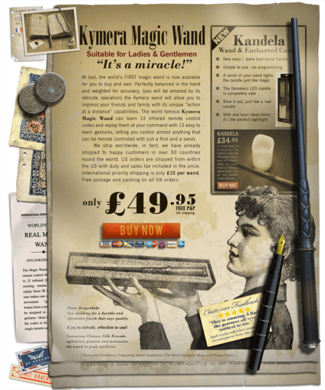 En fait, la baguette magique, The Magic Wand in angliche, vous pourrez l’acquérir sur le net, chez le fabricant de baguettes: The Wand Company