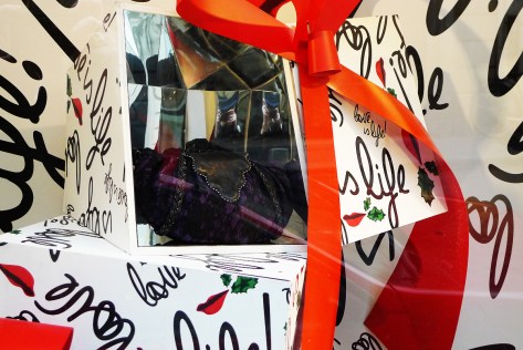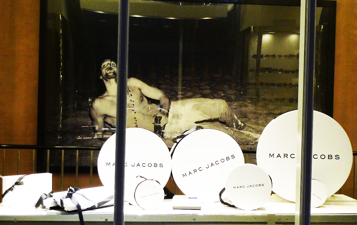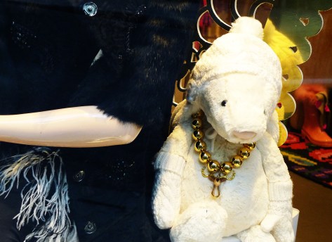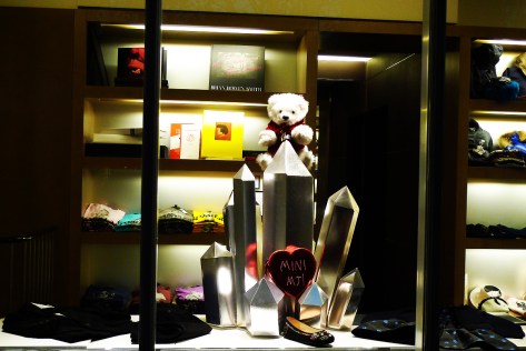 Cet ours de Noël aperçu sur un cristal : Marc Jacobs… on décélère devant MJ.