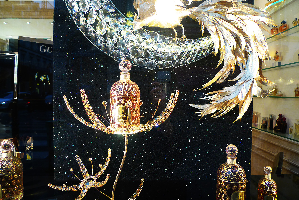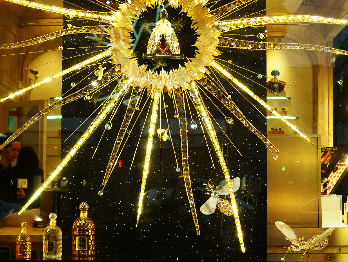 Les vitrines Guerlain, c’est du délire tellement c’est magnifique! Le roi soleil et toutes les dorures de la cour de Versailles réunies dans un si petit espace…