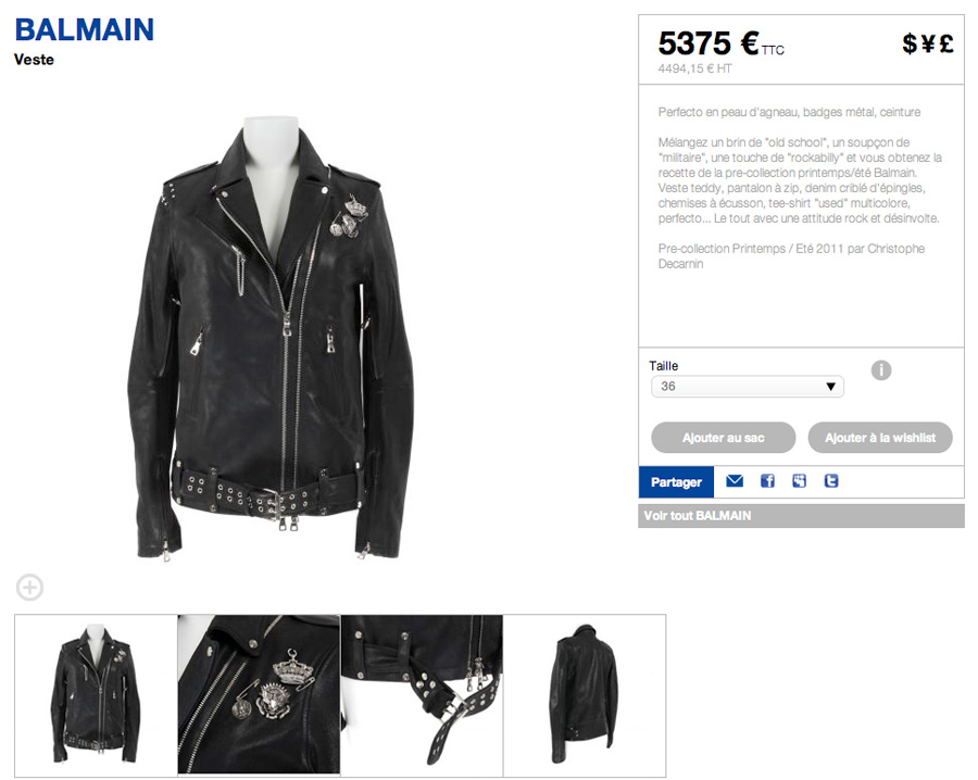 J’ai longtemps pensé qu’il fallait être fou pour porter des perfectos, & puis j’ai vu un perfecto beige de chez Balmain… Depuis je suis tenté. Mes amis me disent que je fais ma crise de la quarantaine un peu à l’avance & que j’aurais juste l’air d’une vieille folle couture qui va draguer les minets dans un bar du Marais. Ils ont sans doute raison. Peu importe. J’économise.