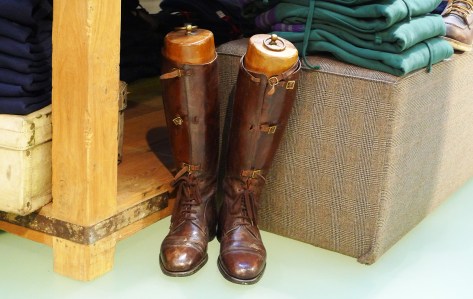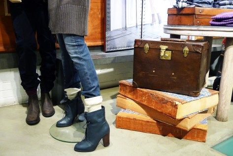 1. Ide a flashé sur les chaussures de marche aux lacets fluo, et moi sur les bottes de cuir enchassées d’un enforme en bois. C’est agréable ce côté gentleman montagnard.