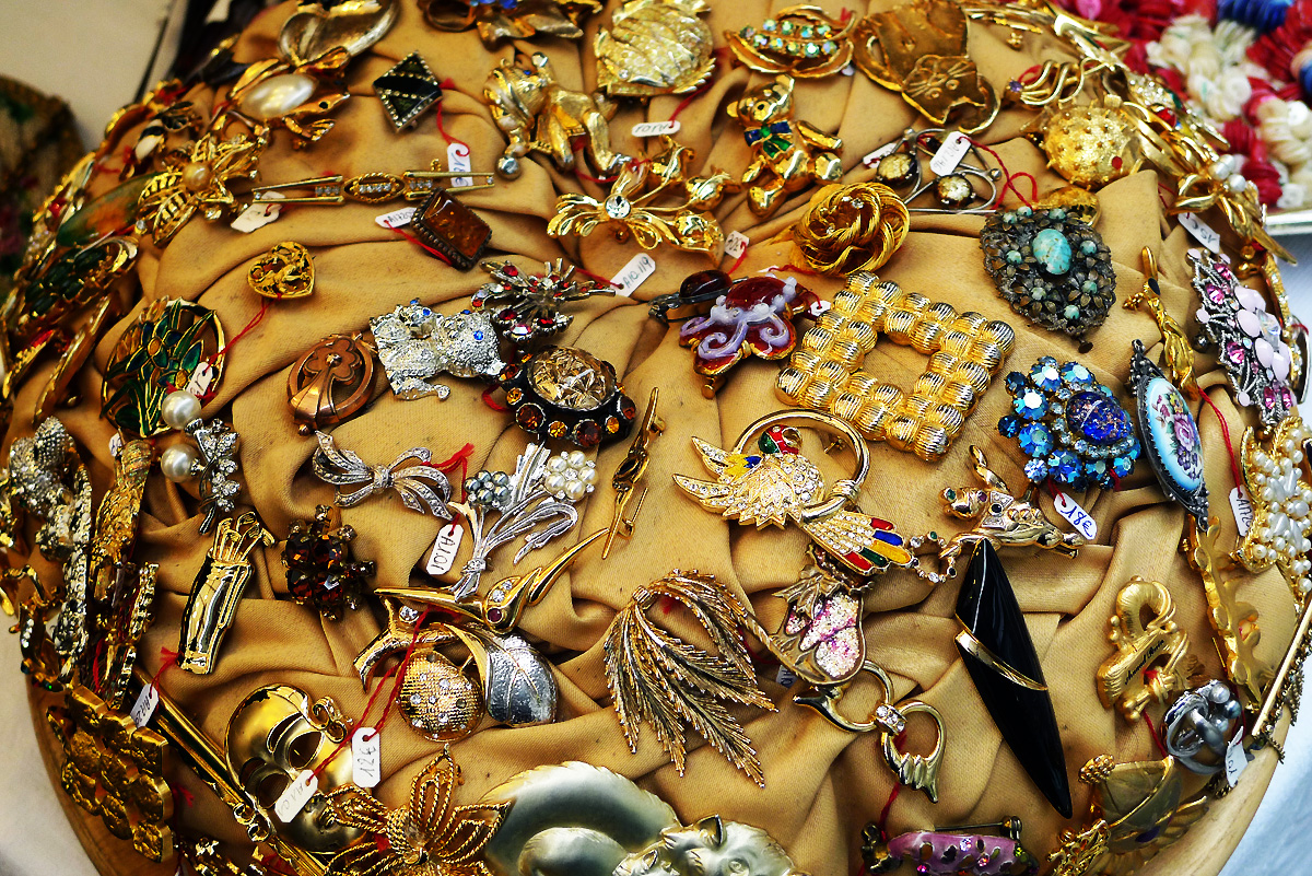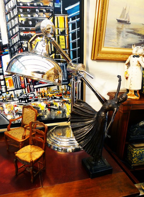 Dès le départ, je fus perdue et heureuse de l’être dans un joyeux bordel de plein d’étals colorés, scintillants, argenteries, cadres, boîtes et autres curiosités.