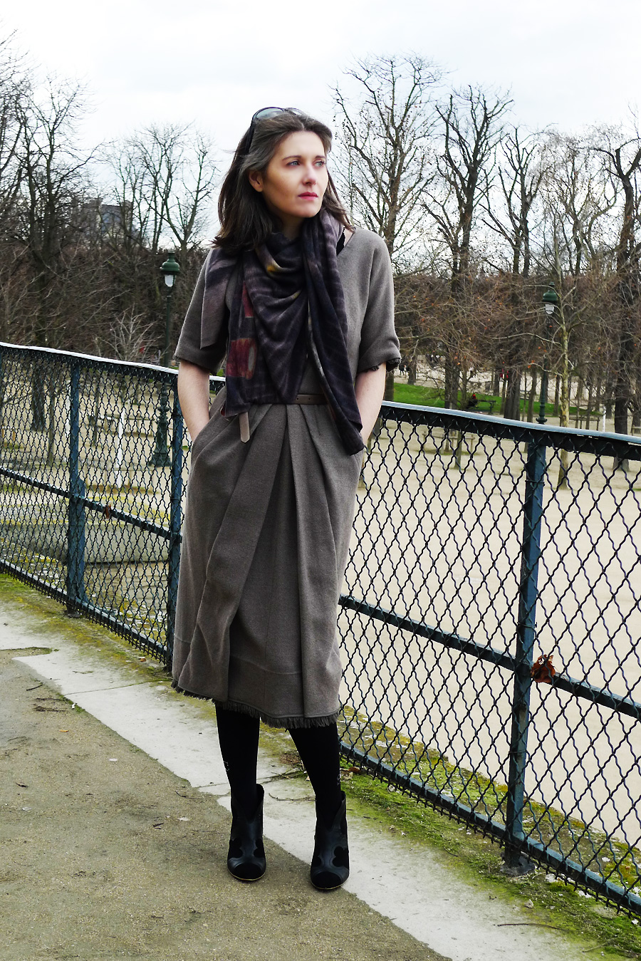 Ma robe Marc Jacobs, de la collection adorée de l’hiver dernier (article là), dénichée en fins de soldes au Palais Royal à -70% me semblait une bonne idée, associée à mon autre achat de ce même jour de craquage : des boots Rupert Sanderson que j’aime d’amour, version hiver des découpées d’été visionnaires que Charlotte arborait ici.