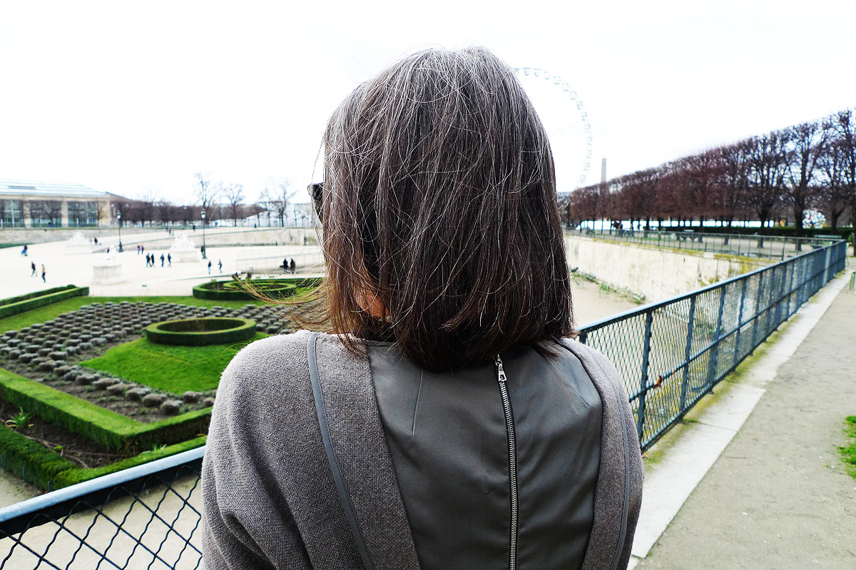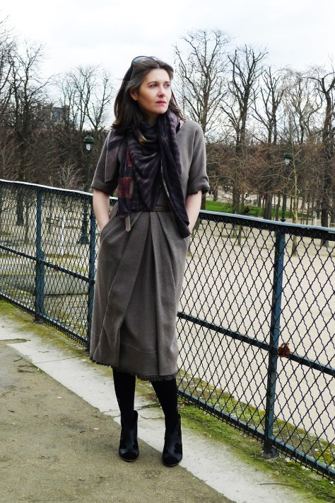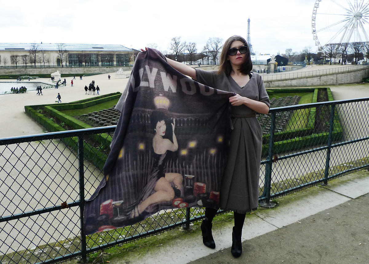 C’est comme ça que ce fameux dimanche, je me suis retrouvée, robe et boots, couverte de mon uniforme de ces dernières semaines : foulard fétiche Delicious Freaks, lunettes, sac préféré, gants et perfecto… noirs, pour braver le vent frisquet.
