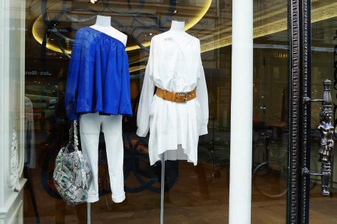 Quelques mètres seulement et Erthée alignait des silhouettes estivales, avec un sac qui justifie leur présence dans ce billet (cool car je préfère la tunique blanche ceinturée, à vrai dire)