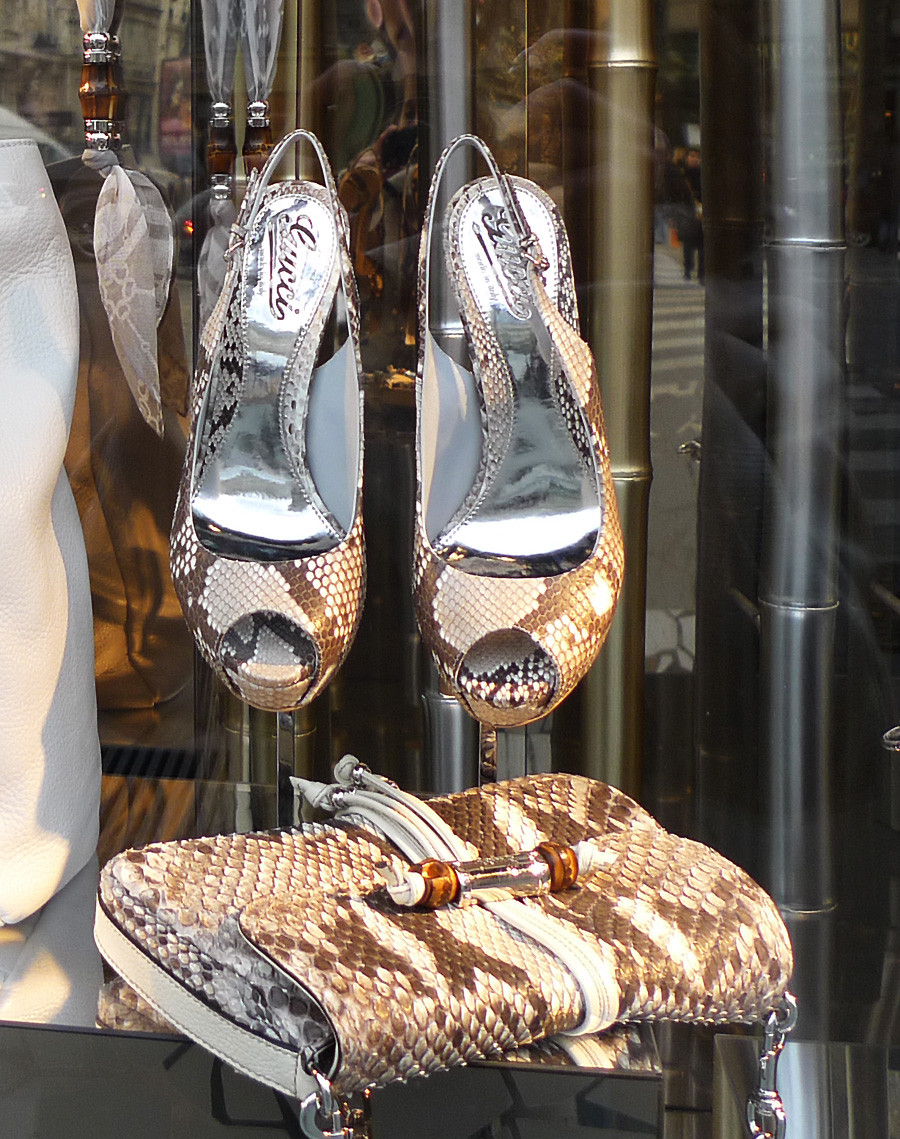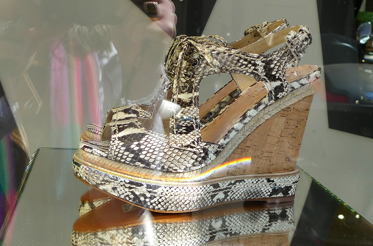Assorti à des chaussures non moins pythonisantes de l’autre côté de la vitrine