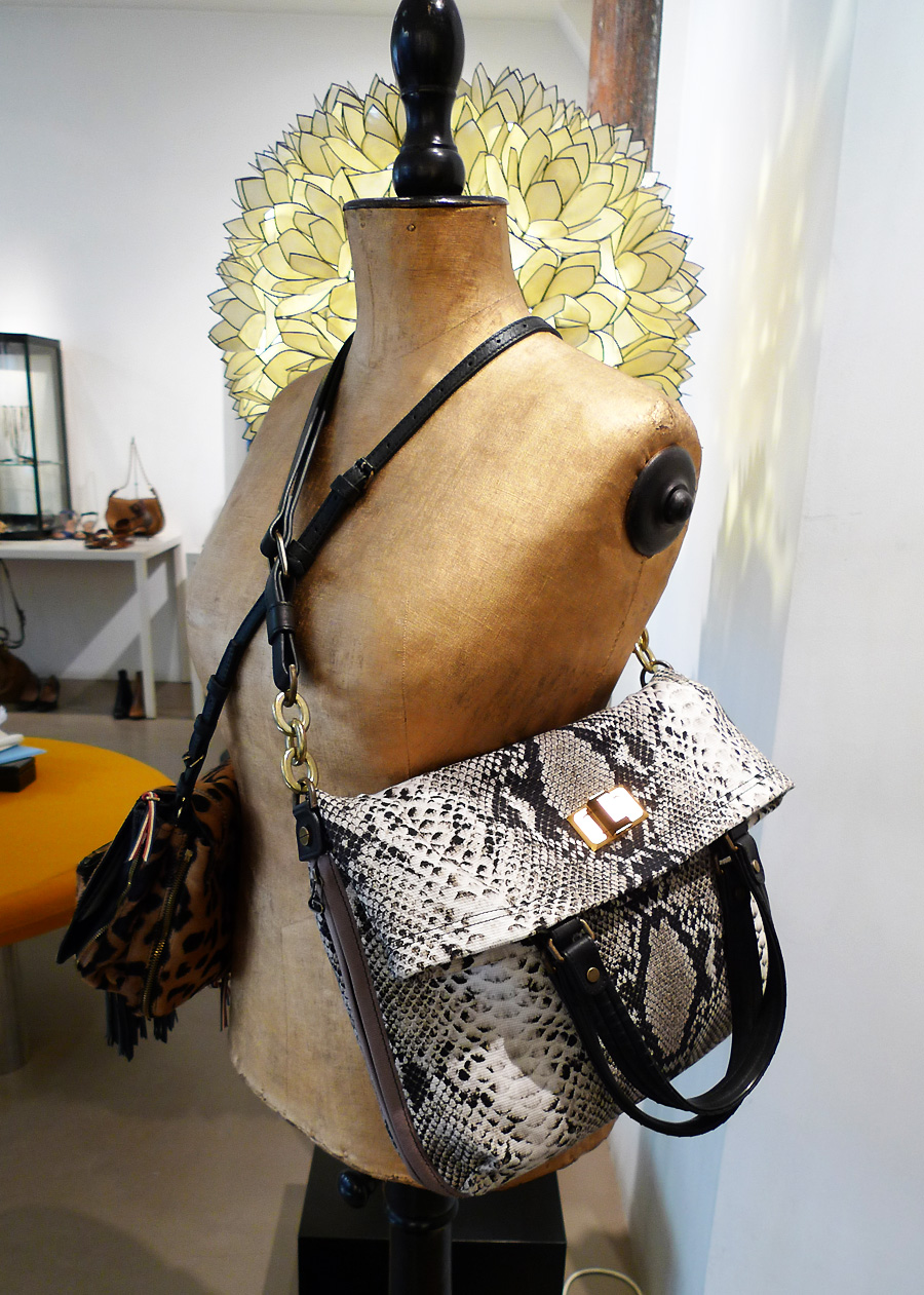 Pourtant je n ai pas de phobie particulière vis à vis des serpents! mais face à ces beaux objets je garde mon sang froid ! à part pour le sac,sous le blouson Rick Owens ! 🙂