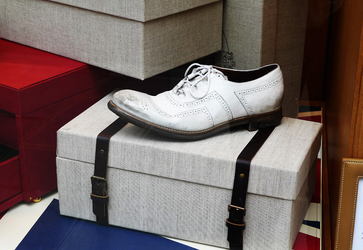 Mais absolvez-moi immédiatement ce crime de lèse-bottier, et pensons plutôt à la vitrine et au classicisme, à la tradition centenaire de cette respectable maison britannique.