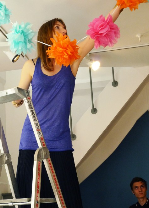 Quelques guirlandes sorties par magie du sac de notre illustratrice aux magnifiques bracelets qui se répondaient… Fascinante et acrobate Eudoxie ! (NB: C’était avant d’enfiler ses escarpins scintillants noirs Rupert Sanderson)