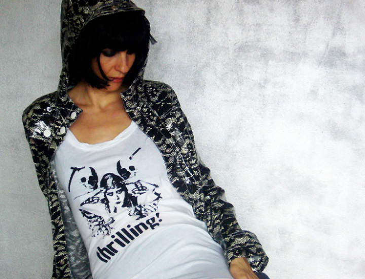 D’autant que ses créatrices (oui, il va de soi que Lady Fantôme n’est pas d’une époque à surfer sur la toile…) ont décidé en plus du récit de l’abracadavrante vie de leur égérie, d’inviter carrément le gothique dans nos placards (après ma malle hantée, me voilà bien achalandée) sous la forme d’impressions sur tshirts et sacs positivement effrayants.