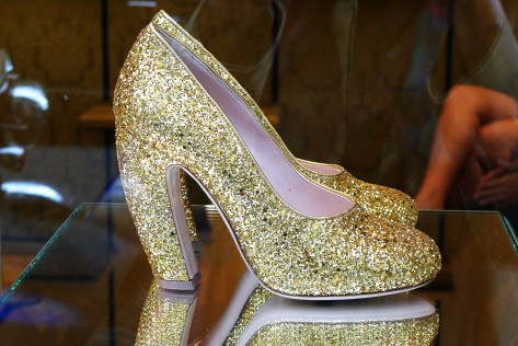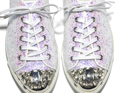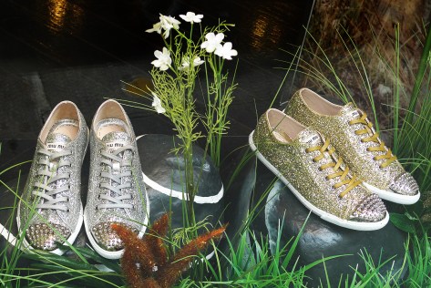 Oh my God, toi aussi tu succombes à tout ce « glittering »!!! j’en suis dingue, et je suis tombée dans la marmitte de dame Drag Queen depuis toute petite, hélas pour mon dressing qui est rempli de vestes à sequins, d’echarpes à paillettes et de tennis de Rappeur millionnaire à l’égo démesuré, genre Kanye West….Mon hymne s’appelle Gold et comme le chante Prince: » All that glitter ain’t gold… » Sans blague les sandales Miu-Miu sont fabuleusement importables et c’est pour cela que je les adore!!!!