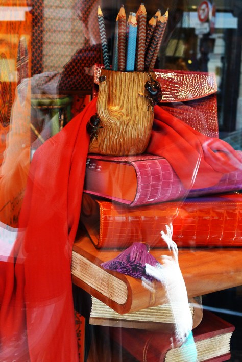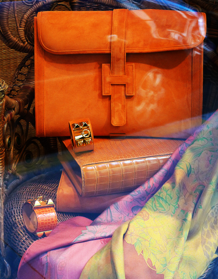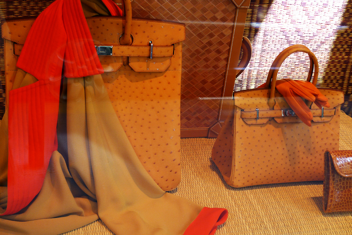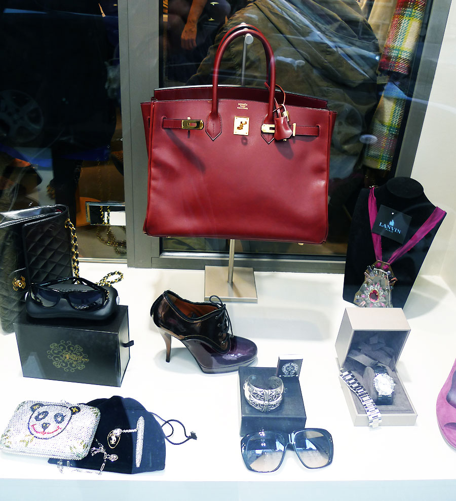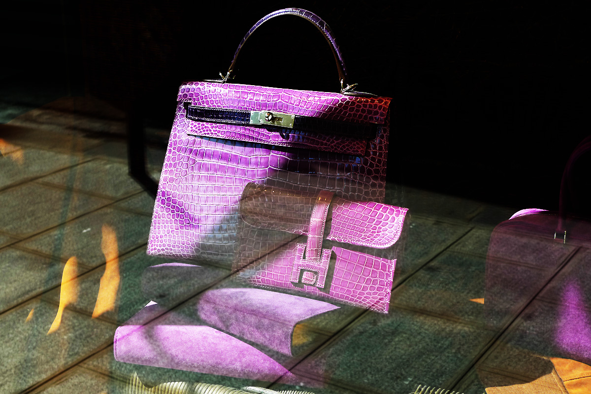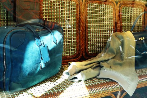 Mais aujourd’hui ce sera différent, pléthore de cuirs rares, de sacs Kelly, Birkin, pris au péril de ma vie et aux dépens de la qualité des images, car on a beau faire le pied de grue, jamais il n’y a personne dans le reflet de ces vitres-là.