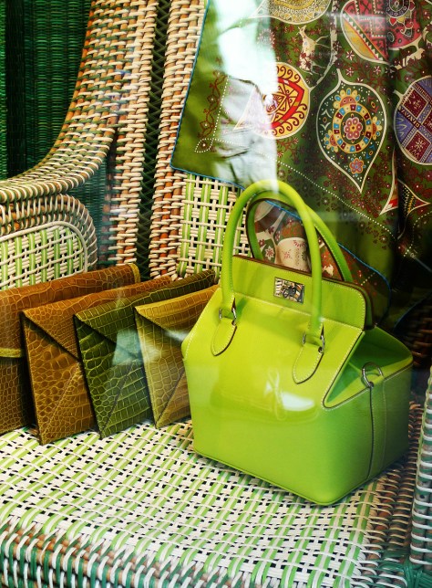 Décliné en osier, panier, vert au milieu des oiseaux, vision d’Hermès écolo ? (Euh… sur Eva Joly, vous êtes sûrs ?)