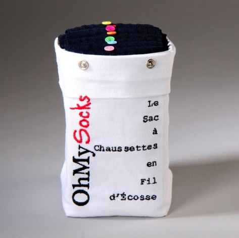 C’est très logiquement à la Shoes & Bubbles Party, chez Rupert Sanderson, que j’ai rencontré Clémentine. Elle m’a raconté Oh My Socks. J’ai commencé à fantasmer dès le détail « fil d’écosse », continué sur leur site (liens en bas, comme d’hab) et après moult déboires avec cette grande institution qu’on appelle La Poste, l’enveloppe jaune contenant des chaussettes pour nous deux est enfin arrivée !