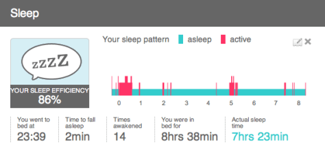 J’ai également acheté un Fitbit: c’est un petit gadget équipé de capteurs de mouvement et autres altimètres qui permet de suivre au quotidien mon activité physique et mon rythme de sommeil. Je le porte toujours sur moi, et il communique également sans fil avec sa base branchée à mon ordinateur, pour alimenter mon profil avec des données objectives.