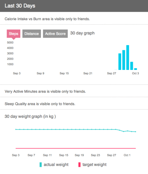 Je ferais ici de brefs rapports réguliers, et dès que j’aurai creusé un peu plus la question technique, peut-être réussirai-je à intégrer à une page le tableau de bord Withings ou Fitbit pour un suivi en temps réel.
